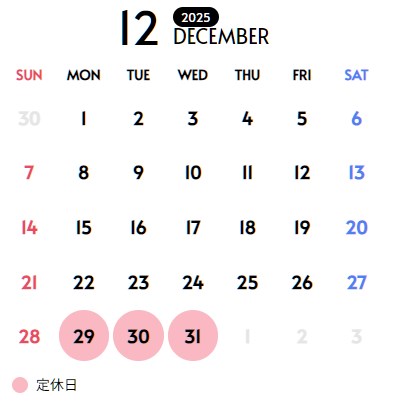 以下、1月の定休日