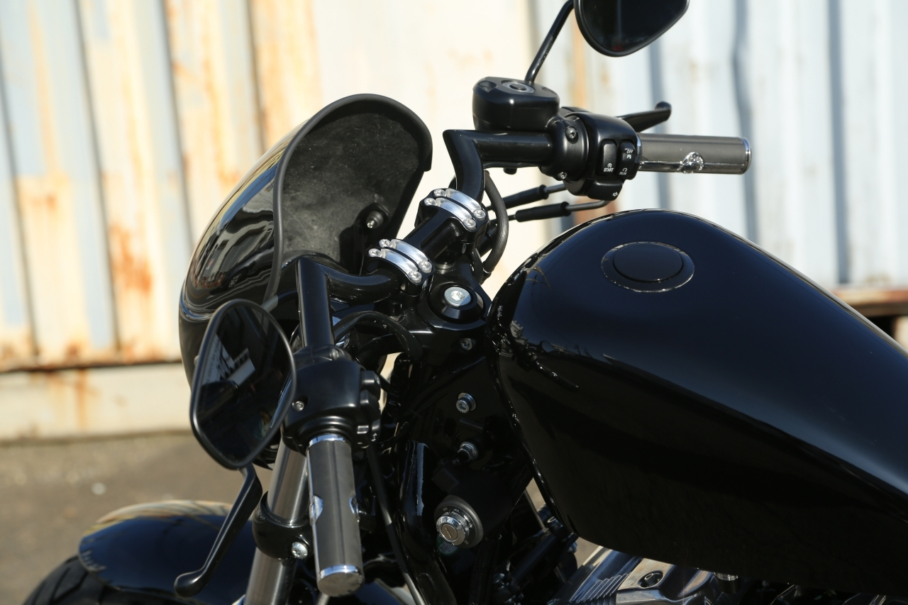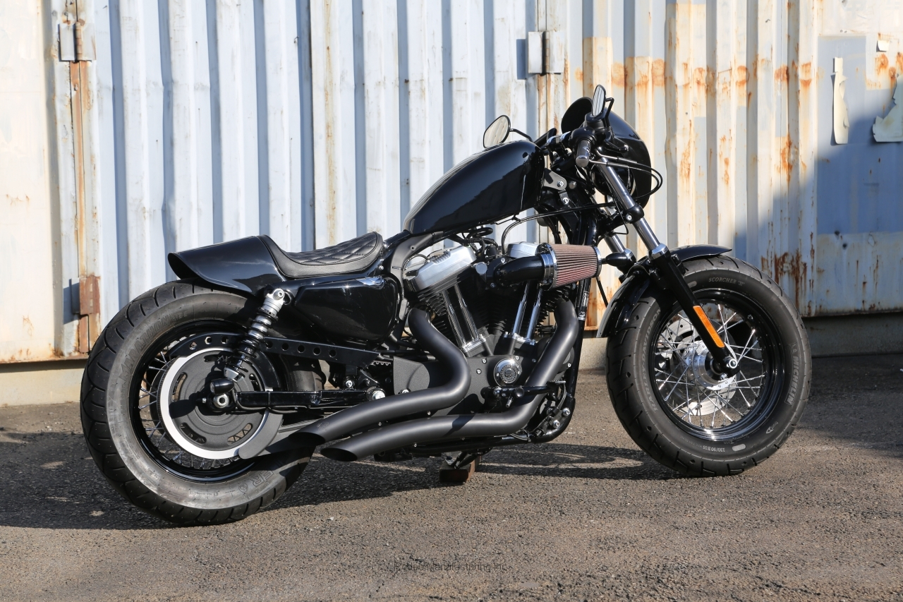 スプリンガーフォークを基調とした王道のボバースタイル。  基本形スタンダード フレームのデザインで作られるスタイルは多彩、ハンドル、フットなど特にポジションについては自分に合わせてワンオフ製作する事で見違えるほど乗りやすいハンドリングのバイクと仕上がります。オプションではセル仕様などにも対応しております。